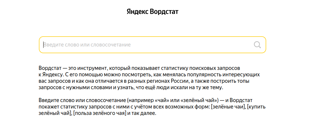 Инструмент, отображающий статистику поисковых запросов в Яндексе. С его помощью можно увидеть изменения в популярности интересующих вас запросов, а также построить топы по ключевым словам и узнать, что ещё искали пользователи на ту же тему.
