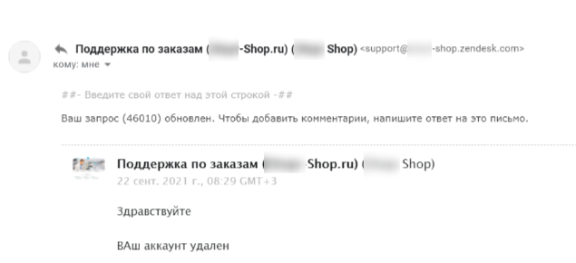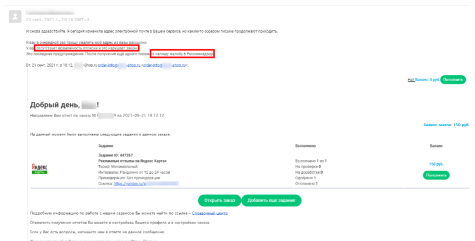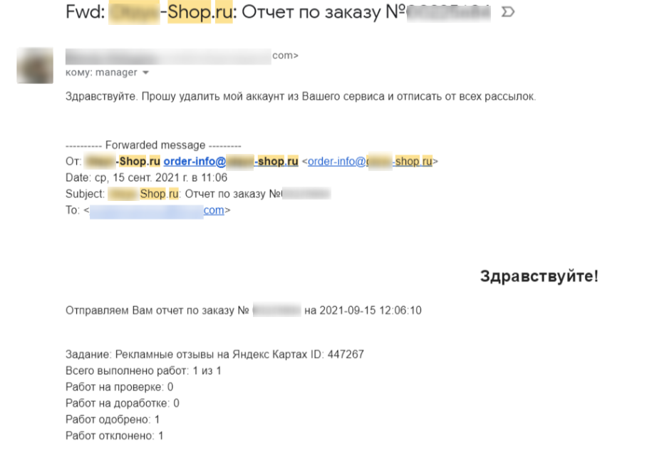 В течение нескольких дней нам по-прежнему отправляли ссылку на отзыв, которого не существовало. Техническая поддержка нам помочь не смогла.