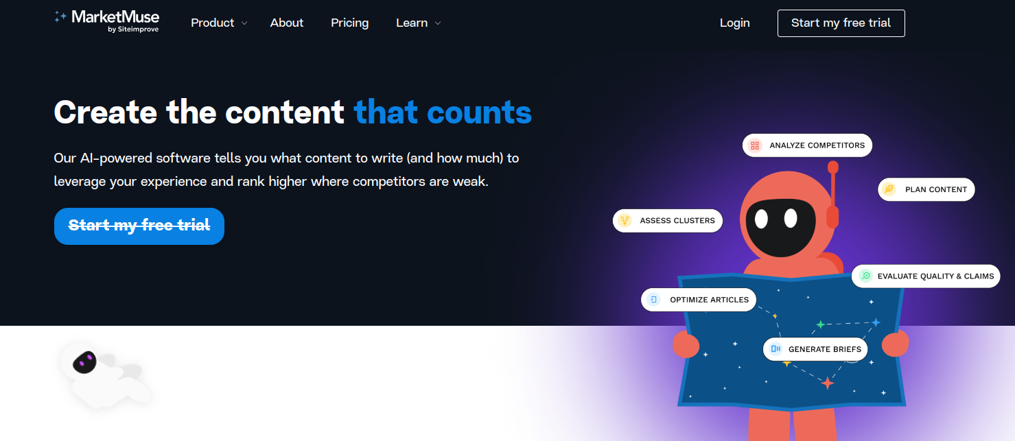 2. MarketMuse - использует искусственный интеллект для анализа наполнения сайта.