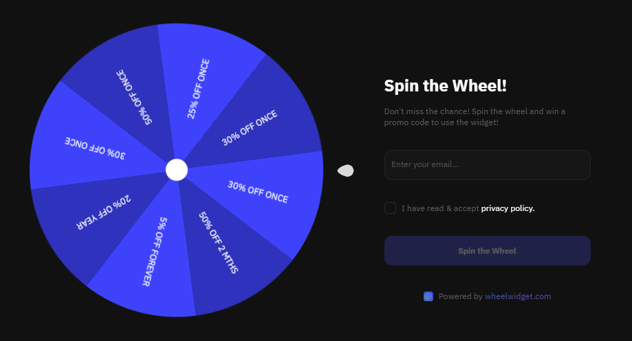 Колесо состоит из нескольких секторов, где каждый отвечает за определенный бонус. По опыту, лучше работает, когда в лотерее есть возможность проиграть. То есть часть секторов являются безвыигрышными. Понятное дело, что это все можно подкрутить, чтобы он никогда не выпадал и не расстраивал посетителя, но кто об этом знает, только вы.