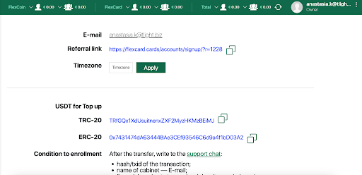 Еще FlexCard дарит каждому новому пользователю 100 виртуальных карт на тест при пополнении 1000 евро, или 5 карт на тест при пополнении 50 евро по промокоду Zenlink. Как получить карты? Нужно всего лишь написать промокод в поддержку.